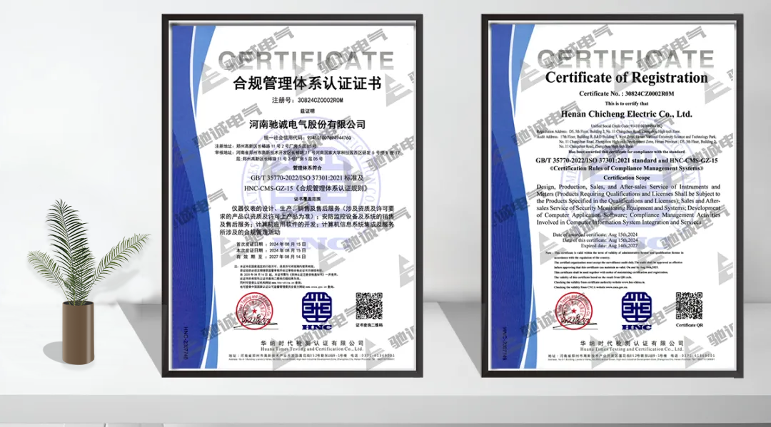 近日,驰诚电气顺利通过合规管理体系与安全生产标准化认证的双项监督审核。这两张含金量十足的“双体系认证”成绩单,不仅印证了驰诚电气在安全生产与合规管理领域的硬核实力,更标志着其“数字+管理”的创新模式已形成可复制的行业标杆。