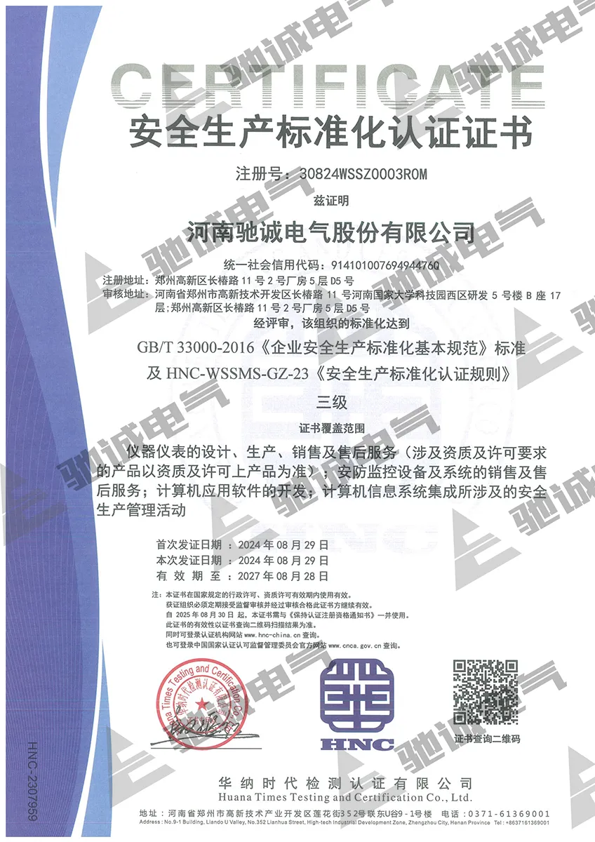 驰诚电气一直重视企业稳健运营管理,多年来,构建了多维管理体系矩阵,如:质量管理体系、环境管理体系、职业健康安全管理体系、知识产权管理体系、测量管理体系、两化融合管理体系、信息安全管理体系、售后服务管理体系等、卓越绩效管理体系等,形成覆盖企业运营全周期的合规防护网。